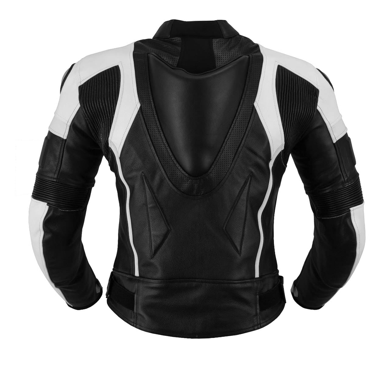 Chaqueta fabricada en cuero de 1’3mm perforado para una mayor ventilación, protecciones homologadas x la CE, máxima resistencia a la abrasión, joroba aerodinámica, inYección titanio en protecciones, paneles elásticos zonas delicadas, forro interior térmico desmontable.
