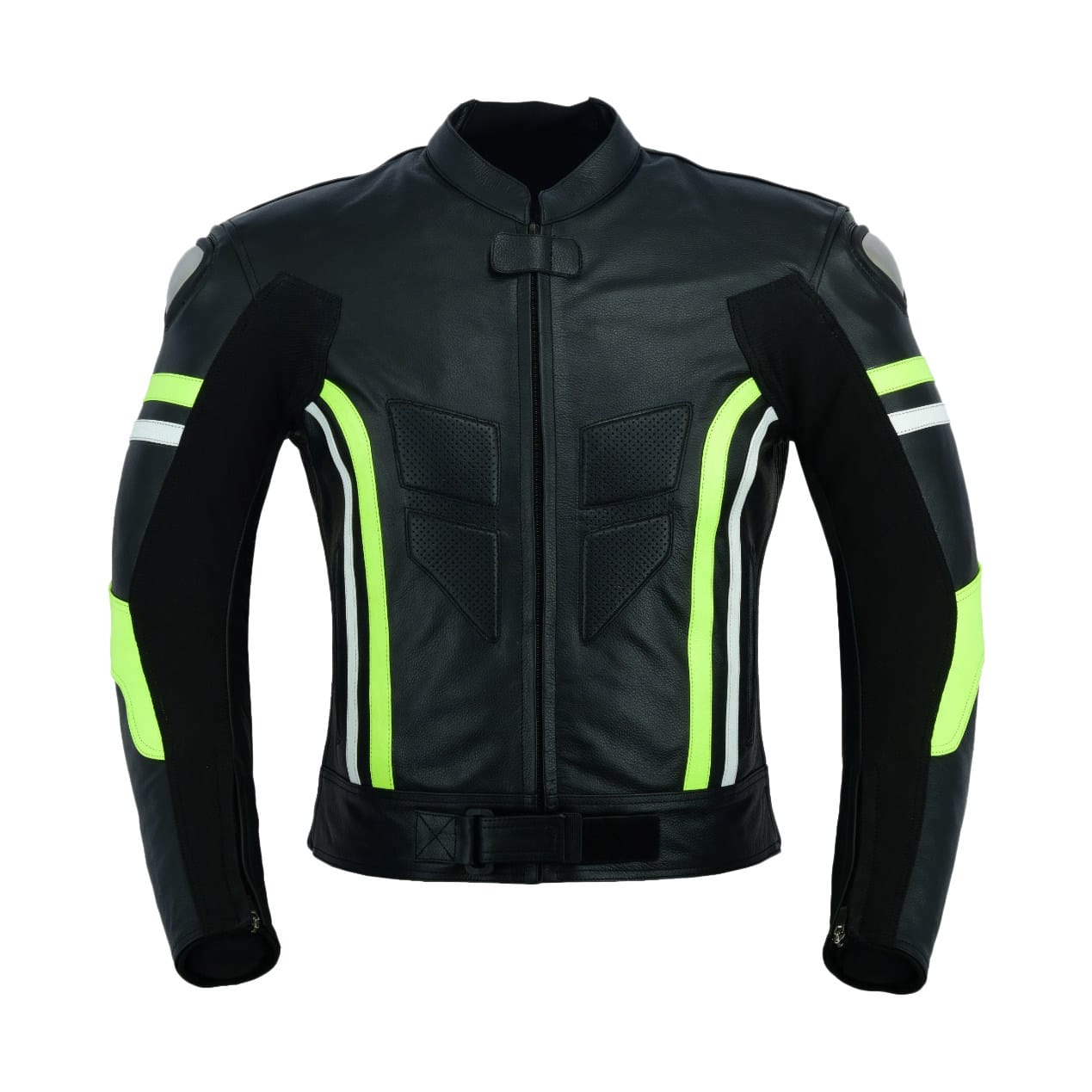 Chaqueta fabricada en cuero de 1’3mm perforado para una mayor ventilación, protecciones homologadas x la CE, máxima resistencia a la abrasión, joroba aerodinámica, inyección titanio en protecciones, paneles elásticos zonas delicadas, forro interior térmico desmontable.