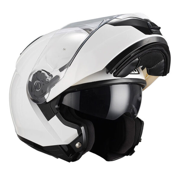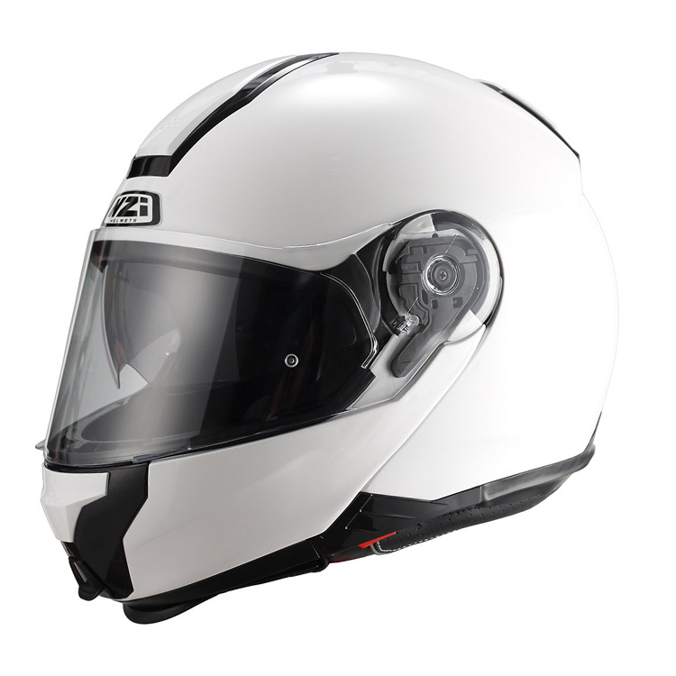 Carcasa de termoplástico resistente a los impactos, mecanismo de cierre de protección maxilar abatible de metal reforzado. Sistema de retención reforzado, arnés dotado de 4 correas para mantener el casco en su lugar.